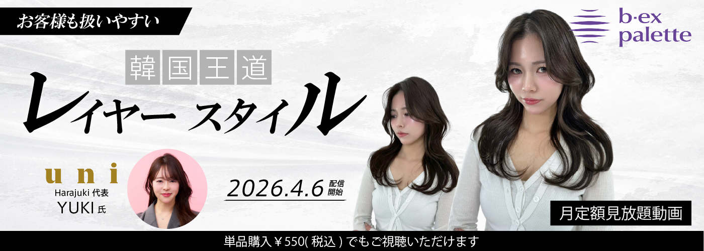 美容師教育動画配信サービス『b-ex palette』では、4月6日より月定額プランで視聴できる動画を追加致しました。